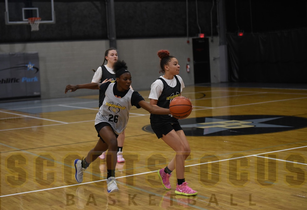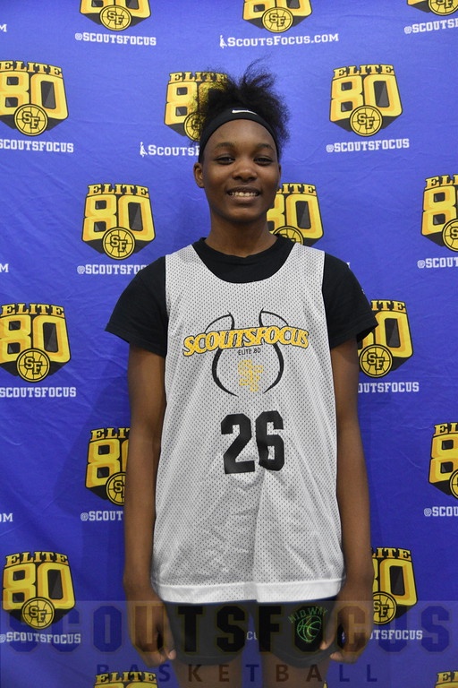 Alexandria Belton, of High Point (NC) T. W. Andrews HS Academy, is a 5'7 130lb 2023 prospect from our Spring 2020 GBORO camp. College coaches on camp staff identified Alexandria as having college potential. Alexandria has a great wingspan that gives the player the potential to be a lock down defender and can be even more effective with active hands/feet. Additionally, the prospect appears to have solid size for position and should use their size to be a pesky defender. The player does a pretty good job of distributing the basketball. With continued emphasis of seeing the whole floor at all times, that skill will become a valuable asset. In terms of ball handling, the prospect showed a great handle and is on the way to being a primary ball handler. The prospect displayed an improving basketball IQ during camp. Through continued emphasis on making the right play at the right time through watching/learning the game, it can be a big advantage in recruiting and earning minutes. A big part of IQ is shot selection. Alexandria does a great job of understanding when there is enough time and space to shoot the ball and will continue to develop this knowledge by watching how this is done at various college levels. Making the extra pass and taking only open in-rhythm shots proved to be a reliable asset for the prospect. The prospect was able to consistently knock down shots during camp showing to be a reliable asset. Shooting will continue to develop with form shooting and made game speed repetitions. We recommend making at least 500 game speed shots a day off the screen(curl/fades), off the bounce, spot shooting, etc. The talent impressed finishing around the rim through contact and in traffic. With continued work finishing through traffic with either hand, adding even more finishing moves, the player will continue to be a grave threat around the basket. The talented player has very good athletic ability for size and age. ScoutsFocus would like to see continued development in speed/agility and vertical development. Jump rope drills are great full body conditioning drill we highly recommend if not ready for a rigorous weight-training program. The prospect is very strong for their age. The college game is an entirely different beast so continued strength development is crucial to prepare going against 23-24 year-olds. Combined with the player's solid frame that should to continue to build year around, the player will be physically ready to play at the next level. The talent showed a very good motor (highly coveted skill by college coaches) that remained mostly active on possessions and from what we saw, the player showed physical and mental toughness throughout camp. The player showed a great understanding and effort on the defensive side of the ball and should continue to focus on individual and team defensive concepts emphasized at camp. Alexandria has college potential with continued hard work and development both in the classroom and on the hardwood. Can play the 3. AAU Team: Team Felton.