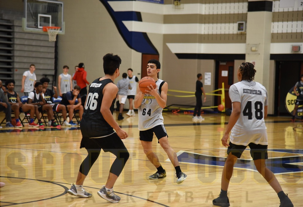Aurian Bidgoli, of Arlington (TX) Grace Prep Academy, is a 6'1 155lb 2021 prospect from our Fall 2019 Dallas camp. College coaches on camp staff identified Aurian as having scholarship potential. Aurian has a great wingspan that gives the player the potential to be a lock down defender and can be even more effective with active hands/feet. Additionally, the prospect appears to have great positional size when used properly remains very advantageous on both sides of the ball. The talented passer, distributes the ball well seeing the floor and anticipating when and where teammates will be open creating easy buckets. In terms of ball handling, the prospect showed a great handle and is on the way to being a primary ball handler. The prospect displayed a good basketball IQ during camp that should continue to improve. Through continued emphasis on making the right play through watching/learning the game, it can be a big advantage in recruiting and separating from others. A big part of IQ is shot selection. Aurian does a great job of understanding when there is enough time and space to shoot the ball and will continue to develop this knowledge by watching how this is done at various college levels. Making the extra pass and taking only open in-rhythm shots proved to be a reliable asset for the prospect. The prospect was able to consistently knock down shots during camp showing to be a reliable asset. Shooting will continue to develop with form shooting and made game speed repetitions. We recommend making at least 500 game speed shots a day off the screen(curl/fades), off the bounce, spot shooting, etc. The talent impressed finishing around the rim through contact and in traffic. With continued work finishing through traffic with either hand, adding even more finishing moves, the player will continue to be a grave threat around the basket. The talented player has very good athletic ability for size and age. ScoutsFocus would like to see continued development in speed/agility and vertical development. Jump rope drills are great full body conditioning drill we highly recommend if not ready for a rigorous weight-training program. The prospect is very strong for their age. The college game is an entirely different beast so continued strength development is crucial to prepare going against 23-24 year-olds. Combined with the player's decent frame, we expect the player to really develop with continued work in the weight room. The talent has a decent motor (highly coveted skill by college coaches) and we would like to see them continue to make every possession an major priority and from what we saw, the player showed physical and mental toughness throughout camp. The player showed a great understanding and effort on the defensive side of the ball and should continue to focus on individual and team defensive concepts emphasized at camp. Aurian has scholarship potential with continued hard work and development both in the classroom and on the hardwood. Can play the 1. AAU Team: Texas Impact.