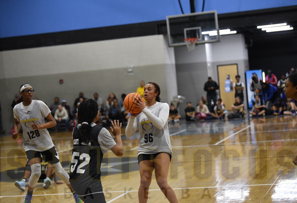 Aysha Short, of Morganton (NC) Hickory HS, is a 5'7 150lb 2021 prospect from our Spring 2020 GBORO camp. College coaches on camp staff identified Aysha as having scholarship potential. Aysha has a great wingspan that gives the player the potential to be a lock down defender and can be even more effective with active hands/feet. Additionally, the prospect appears to have very good size for position when used properly remains advantageous on both sides of the ball. The talented passer, distributes the ball well seeing the floor and anticipating when and where teammates will be open creating easy buckets. In terms of ball handling, the prospect showed a great handle and is on the way to being a primary ball handler. Basketball IQ was one of the player's greatest strengths routinely making the right play at the right time. There was a great emphasis on making the right play, which will be a big advantage in recruiting and separating from others. A big part of IQ is shot selection. Aysha does a great job of understanding when there is enough time and space to shoot the ball and will continue to develop this knowledge by watching how this is done at various college levels. Making the extra pass and taking only open in-rhythm shots proved to be a reliable asset for the prospect. The prospect was able to consistently knock down shots during camp showing to be a reliable asset. Shooting will continue to develop with form shooting and made game speed repetitions. We recommend making at least 500 game speed shots a day off the screen(curl/fades), off the bounce, spot shooting, etc. The talent impressed finishing around the rim through contact and in traffic. With continued work finishing through traffic with either hand, adding even more finishing moves, the player will continue to be a grave threat around the basket. The talented player has very good athletic ability for size and age. ScoutsFocus would like to see continued development in speed/agility and vertical development. Jump rope drills are great full body conditioning drill we highly recommend if not ready for a rigorous weight-training program. The prospect is very strong for their age. The college game is an entirely different beast so continued strength development is crucial to prepare going against 23-24 year-olds. Combined with the player's solid frame that should to continue to build year around, the player will be physically ready to play at the next level. The talent had an impressive motor (highly coveted skill by college coaches) that we believe will translate well at the next level. College coaches will be impressed watching the talented prospects motor and from what we saw, the player showed physical and mental toughness throughout camp. The player showed a great understanding and effort on the defensive side of the ball and should continue to focus on individual and team defensive concepts emphasized at camp. Aysha has scholarship potential with continued hard work and development both in the classroom and on the hardwood. Can play the 2. AAU Team: I-40 Elite.