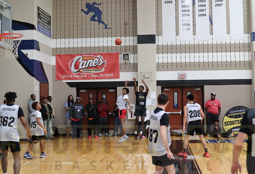 Jamion Ebron, of Frisco (TX) Lebanon Trail HS, is a 6'2 178lb 2020 prospect from our Spring 2020 DAL camp. College coaches on camp staff identified Jamion as having scholarship potential. Jamion has a great wingspan that gives the player the potential to be a lock down defender and can be even more effective with active hands/feet. Additionally, the prospect appears to have very good size for position when used properly remains advantageous on both sides of the ball. The talented passer, distributes the ball well seeing the floor and anticipating when and where teammates will be open creating easy buckets. In terms of ball handling, the prospect showed a great handle and is on the way to being a primary ball handler. The prospect's Basketball IQ definitely stood out at camp and proved to be really good. Through continued emphasis on making the right play through watching/learning the game, it can be a big advantage in recruiting. A big part of IQ is shot selection. Jamion does a great job of understanding when there is enough time and space to shoot the ball and will continue to develop this knowledge by watching how this is done at various college levels. Making the extra pass and taking only open in-rhythm shots proved to be a reliable asset for the prospect. The prospect was able to consistently knock down shots during camp showing to be a reliable asset. Shooting will continue to develop with form shooting and made game speed repetitions. We recommend making at least 500 game speed shots a day off the screen(curl/fades), off the bounce, spot shooting, etc. The talent impressed finishing around the rim through contact and in traffic. With continued work finishing through traffic with either hand, adding even more finishing moves, the player will continue to be a grave threat around the basket. The talented player has very good athletic ability for size and age. ScoutsFocus would like to see continued development in speed/agility and vertical development. Jump rope drills are great full body conditioning drill we highly recommend if not ready for a rigorous weight-training program. We determined the prospect's strength to be one of their best qualities. The college game is an entirely different beast so continued strength development is crucial to prepare going against 23-24 year-olds. Combined with the player's solid frame that should to continue to build year around, the player will be physically ready to play at the next level. The talent showed a very good motor (highly coveted skill by college coaches) that remained mostly active on possessions and from what we saw, the player showed physical and mental toughness throughout camp. The player showed a great understanding and effort on the defensive side of the ball and should continue to focus on individual and team defensive concepts emphasized at camp. Jamion has scholarship potential with continued hard work and development both in the classroom and on the hardwood. Can play the 2; 3; 4. AAU Team: NTX Elite.