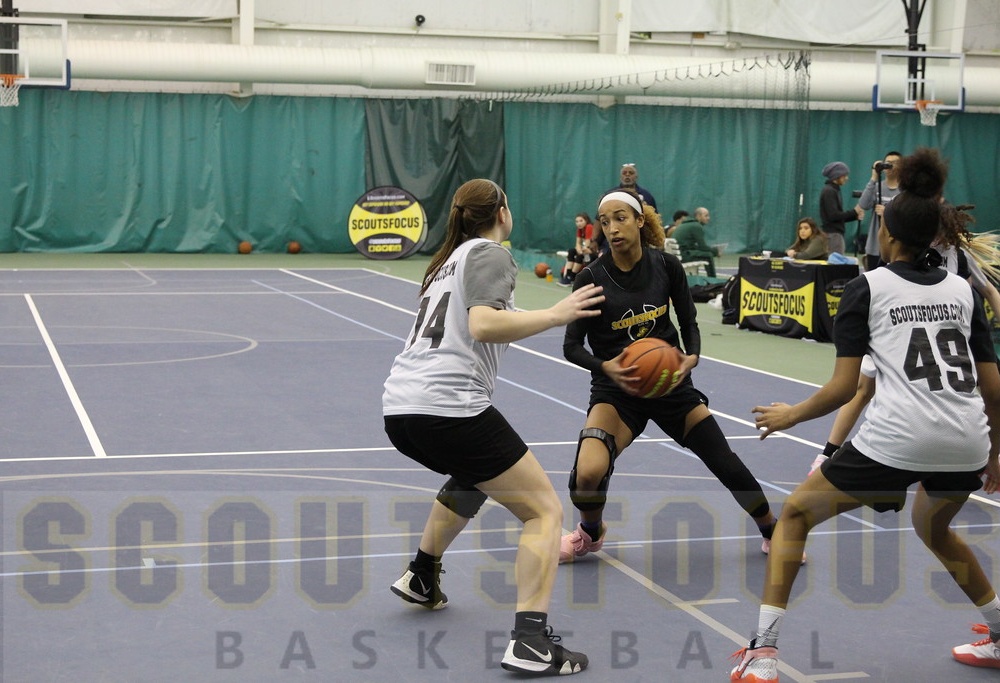 Kayla Williams, of Mt Holly (NJ) Rancocas Valley, is a 5'11 155lb 2020 prospect from our Spring 2020 NY camp. College coaches on camp staff identified Kayla as having scholarship potential. Kayla has a disruptive wingspan that gives the player the potential to be a lock down defender and can be even more effective with active hands/feet. Additionally, the prospect appears to have great positional size when used properly remains very advantageous on both sides of the ball. The talented passer, distributes the ball well seeing the floor and anticipating when and where teammates will be open creating easy buckets. In terms of ball handling, the prospect showed a great handle and is on the way to being a primary ball handler. The prospect's Basketball IQ definitely stood out at camp and proved to be really good. Through continued emphasis on making the right play through watching/learning the game, it can be a big advantage in recruiting. A big part of IQ is shot selection. Kayla does an excellent job of shooting the basketball with rhythm and possesses high-level knowledge between good/bad shots. This advantage will continue to develop by watching how this is done at various college levels. Making the extra pass and taking only open in-rhythm shots proved to be a very reliable asset for the prospect. The prospect was able to consistently knock down shots during camp showing to be a reliable asset. Shooting will continue to develop with form shooting and made game speed repetitions. We recommend making at least 500 game speed shots a day off the screen(curl/fades), off the bounce, spot shooting, etc. The talent impressed finishing around the rim through contact and in traffic. With continued work finishing through traffic with either hand, adding even more finishing moves, the player will continue to be a grave threat around the basket. The talented player has very good athletic ability for size and age. ScoutsFocus would like to see continued development in speed/agility and vertical development. Jump rope drills are great full body conditioning drill we highly recommend if not ready for a rigorous weight-training program. The prospect is very strong for their age. The college game is an entirely different beast so continued strength development is crucial to prepare going against 23-24 year-olds. Combined with the player's solid frame that should to continue to build year around, the player will be physically ready to play at the next level. The talent showed a very good motor (highly coveted skill by college coaches) that remained mostly active on possessions and from what we saw, the player had a physical and mental toughness that will be coveted at the next level. The player showed a great understanding and effort on the defensive side of the ball and should continue to focus on individual and team defensive concepts emphasized at camp. Kayla has scholarship potential with continued hard work and development both in the classroom and on the hardwood. Can play the 2; 3; 4. AAU Team: .
