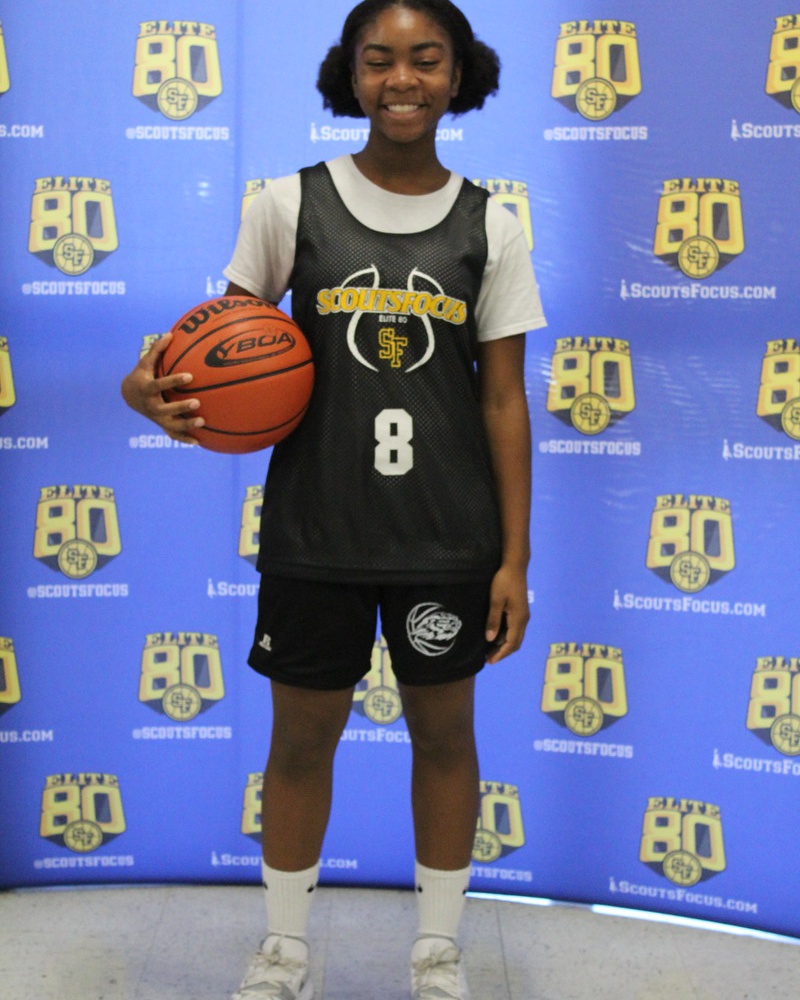 Kimora Luckey, of Duluth (GA) Hull Middle School, is a 5'3 115lb 2022 prospect from our Fall 2018 ATL camp. College coaches on camp staff identified Kimora as having college potential. Kimora has a good wingspan, which can be more effective with active hands/feet. Additionally, the prospect appears to have solid size for position and should use their size to be a pesky defender. The talented passer, distributes the ball well seeing the floor and anticipating when and where teammates will be open creating easy buckets. In terms of ball handling, the prospect showed a great handle and is on the way to being a primary ball handler. The prospect's Basketball IQ definitely stood out at camp and proved to be really good. Through continued emphasis on making the right play through watching/learning the game, it can be a big advantage in recruiting. A big part of IQ is shot selection. Kimora does a great job of understanding when there is enough time and space to shoot the ball and will continue to develop this knowledge by watching how this is done at various college levels. Making the extra pass and taking only open in-rhythm shots proved to be a reliable asset for the prospect. The prospect was able to consistently knock down shots during camp showing to be a reliable asset. Shooting will continue to develop with form shooting and made game speed repetitions. We recommend making at least 500 game speed shots a day off the screen(curl/fades), off the bounce, spot shooting, etc. The talent was a capable finisher around the rim. With continued work finishing through traffic with either hand, through contact, and developing more finishing moves, the player will continue to be an improving threat around the basket. The talented player has very good athletic ability for size and age. ScoutsFocus would like to see continued development in speed/agility and vertical development. Jump rope drills are great full body conditioning drill we highly recommend if not ready for a rigorous weight-training program. The prospect showed a solid level of strength. We would like to see continued strength development whether it is via traditional strength training means or body weight military type development(pushups/pull-ups). Combined with the player's decent frame, we expect the player to really develop with continued work in the weight room. The talent had an impressive motor (highly coveted skill by college coaches) that we believe will translate well at the next level. College coaches will be impressed watching the talented prospects motor and from what we saw, the player had a physical and mental toughness that will be coveted at the next level. The player showed a great understanding and effort on the defensive side of the ball and should continue to focus on individual and team defensive concepts emphasized at camp. Kimora has college potential with continued hard work and development both in the classroom and on the hardwood. Can play the 1; 2. AAU Team: Team Elite Brown.