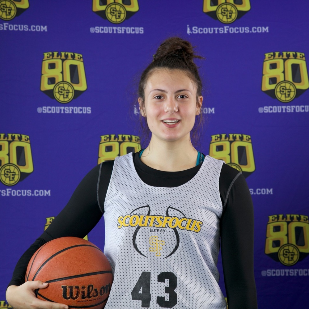Sara Coppola, of Mount Laurel (NJ) Ss.John Neumann Maria Goretti, is a 5'11 170lb 2021 prospect from our Fall 2018 NY camp. College coaches on camp staff identified Sara as having scholarship potential. Sara has a great wingspan that gives the player the potential to be a lock down defender and can be even more effective with active hands/feet. Additionally, the prospect appears to have very good size for position when used properly remains advantageous on both sides of the ball. The very talented passer does a fantastic job distributing and seeing the floor. The player is always anticipating when and where teammates will be open, a highly coveted trait in the team sport. In terms of ball handling, the prospect showed a great handle and is on the way to being a primary ball handler. The prospect's Basketball IQ definitely stood out at camp and proved to be really good. Through continued emphasis on making the right play through watching/learning the game, it can be a big advantage in recruiting. A big part of IQ is shot selection. Sara does an excellent job of shooting the basketball with rhythm and possesses high-level knowledge between good/bad shots. This advantage will continue to develop by watching how this is done at various college levels. Making the extra pass and taking only open in-rhythm shots proved to be a very reliable asset for the prospect. The prospect was able to consistently knock down shots during camp showing to be a reliable asset. Shooting will continue to develop with form shooting and made game speed repetitions. We recommend making at least 500 game speed shots a day off the screen(curl/fades), off the bounce, spot shooting, etc. The talent impressed finishing around the rim through contact and in traffic. With continued work finishing through traffic with either hand, adding even more finishing moves, the player will continue to be a grave threat around the basket. The talented player has very good athletic ability for size and age. ScoutsFocus would like to see continued development in speed/agility and vertical development. Jump rope drills are great full body conditioning drill we highly recommend if not ready for a rigorous weight-training program. The prospect is very strong for their age. The college game is an entirely different beast so continued strength development is crucial to prepare going against 23-24 year-olds. Combined with the player's solid frame that should to continue to build year around, the player will be physically ready to play at the next level. The talent showed a very good motor (highly coveted skill by college coaches) that remained mostly active on possessions and from what we saw, the player showed physical and mental toughness throughout camp. The player showed a great understanding and effort on the defensive side of the ball and should continue to focus on individual and team defensive concepts emphasized at camp. Sara has scholarship potential with continued hard work and development both in the classroom and on the hardwood. Can play the 2; 3; 4. AAU Team: Philadelphia Belles.