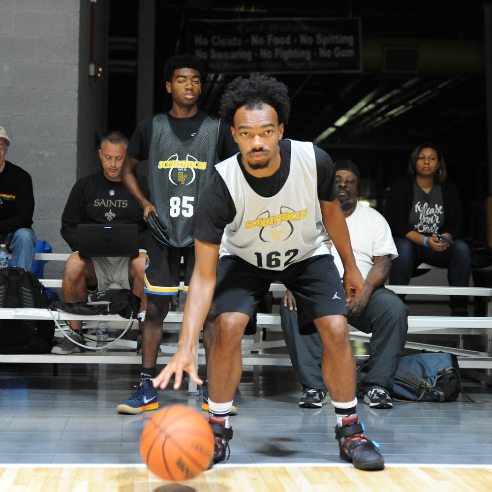 Torrey Rogers II, of Port Tobacco (MD) Maurice J. McDonough HS, is a 6'2 170lb 2019 prospect from our Fall 2018 DC camp. College coaches on camp staff identified Torrey as having college potential. Torrey has a good wingspan, which can be more effective with active hands/feet. Additionally, the prospect appears to have solid size for position and should use their size to be a pesky defender. The player does a decent job of distributing the basketball. With continued emphasis of seeing the whole floor at all times and basic passing practice drills; that skill will continue to improve. In terms of ball handling, the prospect showed a strong handle and has the potential to be a primary ball handler with daily work. The prospect displayed a good basketball IQ during camp that should continue to improve. Through continued emphasis on making the right play through watching/learning the game, it can be a big advantage in recruiting and separating from others. A big part of IQ is shot selection. Torrey knows when there is proper time and space to shoot the ball and should continue develop this knowledge through watching how this is done at various college levels. Making the extra pass and taking only open in-rhythm shots will make this player a joy to coach in college. The prospect displayed sound shooting mechanics that will continue to develop with form shooting and made game speed repetitions We recommend making at least 750 game speed shots a day off the screen(curl/fades), off the bounce, spot shooting, etc. The talent was a capable finisher around the rim. With continued work finishing through traffic with either hand, through contact, and developing more finishing moves, the player will continue to be an improving threat around the basket. The talented player has good athletic ability for size and age. ScoutsFocus would like to see continued development in speed/agility and vertical development. Jump rope drills are great full body conditioning drill we highly recommend if not ready for a rigorous weight-training program. The prospect showed a solid level of strength. We would like to see continued strength development whether it is via traditional strength training means or body weight military type development(pushups/pull-ups). Combined with the player's decent frame, we expect the player to really develop with continued work in the weight room. The talent has a good motor (highly coveted skill by college coaches) and we would like to see them continue to make every possession an major priority and from what we saw, toughness from the player was shown some throughout camp. The player showed reliability on the defensive side of the ball and should continue to focus on individual and team defensive concepts emphasized at camp. Torrey has college potential with continued hard work and development both in the classroom and on the hardwood. Can play the 1; 2. AAU Team: Metroball DC.
